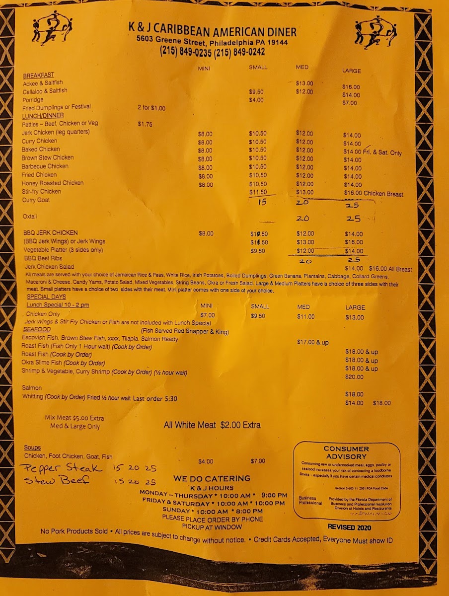 Welcome to K & J Caribbean American Diner, where vibrant Caribbean flavors meet classic American comfort. Nestled at 5603 Greene St, Philadelphia, this charming diner delights guests with an enticing menu that embodies the heart of Caribbean cuisine.